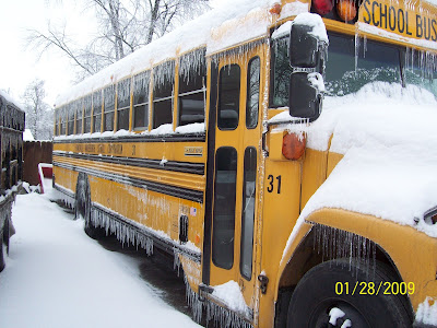My school bus with ice hanging on it.